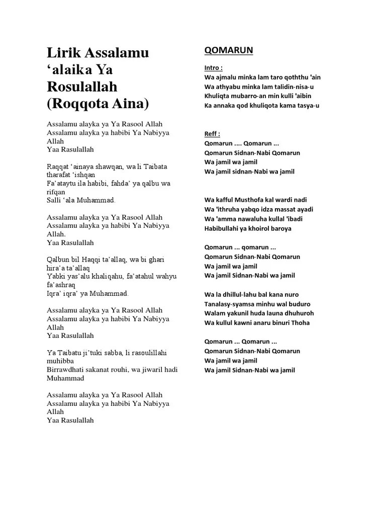 Lirik lagu qomarun teks indonesia arab full terjemahan kangen. Single ini kemudian di cover oleh beberapa penyanyi religi salah satunya sabyan gambus. Majlis sholawat syubbanul muslimin, dan sholawat ini juga telah . Kumpulan lagu roqqot aina versi syubbanul muslimin full album. Layanan mobile dari situs entertainment terbesar indonesia, kapanlagi.com.